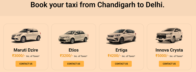 Chandigarh to Delhi Taxi | Fares Starting from ₹3000 | |