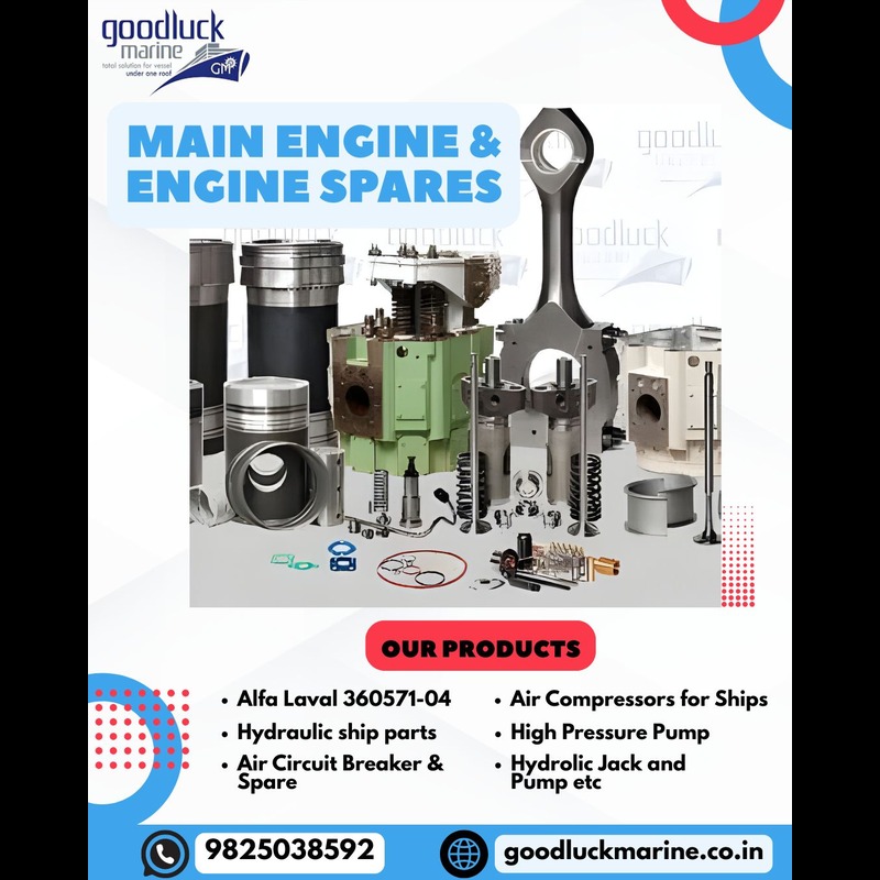 Get trusted Marine Spare Parts Supply for Main Engine & Engine Spares, hydraulic pump spare parts, hydraulic ship parts, and hydraulic cylinder spare parts. We also provide Air Circuit Breaker & Spare, Alfa Laval 360571-04, 362c74+1b125b20, and NMF 914 718 control panel SMK 16 SRK. Visit Us: https://goodluckmarine.co.in ![]() | |