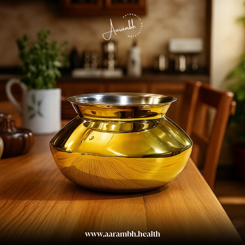 The easiest way to switch over to a healthy lifestyle is replacing already in use utensils with ones that provide some benefit instead of none. Aarambh today with a brass patila. Made out of virgin copper and zinc and NABL lab tested for your and your family’s health, this utensil proves a humble step to switch over. Using brass helps with overall immunity, helps in melanin production, pacifies pitta and provides natural blood purification due to Zinc. ![]() | |