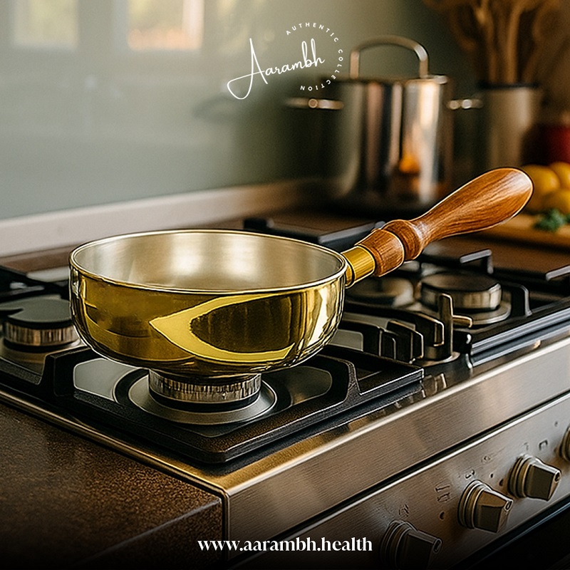 | The easiest way to switch over to a healthy lifestyle is replacing already in use utensils with ones that provide some benefit instead of none. Aarambh today with a brass fry pan. Made out of virgin copper and zinc and NABL lab tested for your and your family’s health, this utensil proves a humble step to switch over. Using brass helps with overall immunity, helps in melanin production, pacifies pitta and provides natural blood purification due to Zinc.  | |
