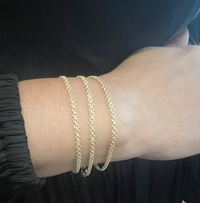 This 14K real yellow gold Bismark chain bracelet combines elegance, delicacy, and timeless style. Measuring 7.25 inches, its thin, lightweight design makes it comfortable for all-day wear while maintaining a refined presence on the wrist. The flat mesh Bismark links create a subtle texture that reflects light beautifully, adding sophistication to any outfit. Its dainty and stackable style allows for versatile layering with other bracelets or wearing alone as a minimalist statement piece. Crafted from genuine 14K gold, this bracelet is durable, hypoallergenic, and perfect for gifting on birthdays, anniversaries, or special occasions. ![]() | |