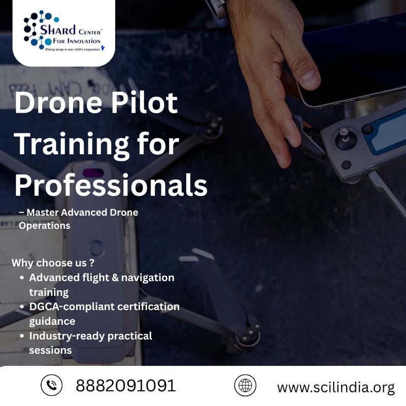 "Take your career to new heights with Drone Pilot Training for Professionals, a hands-on program designed to build real-world flying and operational skills. The course covers flight theory, drone navigation, aerial mapping, maintenance, safety rules, and DGCA-compliant operations. Taught by certified instructors, this training prepares professionals for careers in industries like agriculture, surveying, cinematography, and infrastructure inspection. Learn to handle drones with precision, safety, and confidence while gaining professional certification for commercial applications. Why choose Shard Center for Innovation ? Advanced flight & navigation training DGCA-compliant certification guidance Industry-ready practical sessions “Take Control. Fly Your Future.” Learn more - https://scilindia.org/courses/Drone-pilot-training-course " ![]() | |