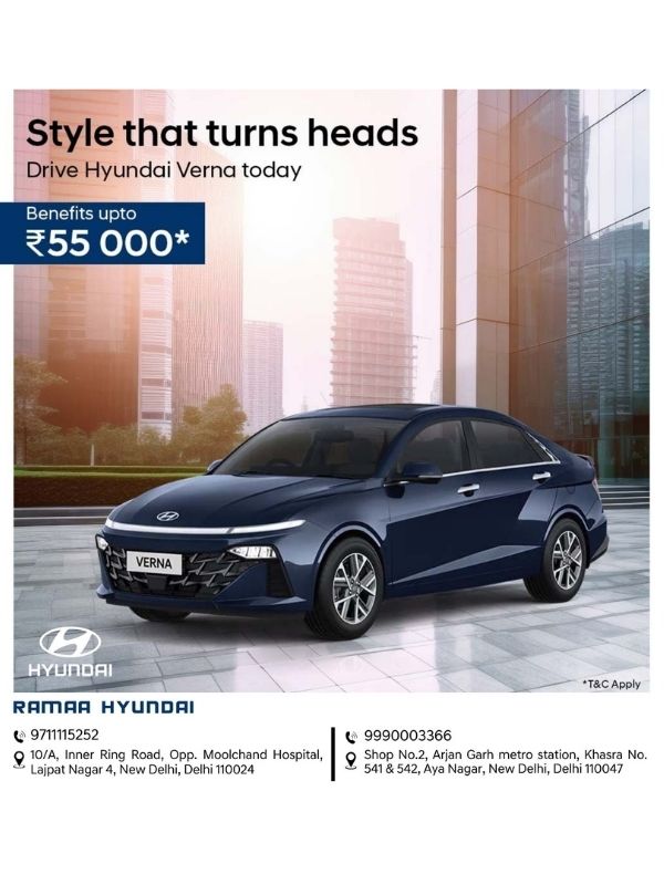 Exclusive offers and low EMI options across the entire Hyundai range! Save big on Verna (up to ₹55K benefits) and the new Venue. Exchange available for any model. Visit our Lajpat Nagar or Arjan Garh showrooms! website :https://ramaahyundai.com/Hyundai-Lajpat-Nagar/ ➡️ Book your test drive today! ➡️ Call Ramaa Hyundai: 9711115252 or 9990003366 ![]() | |