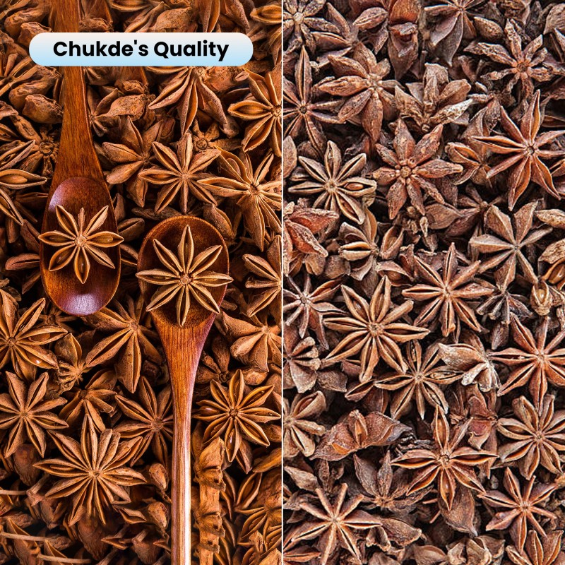 Chukde Star Anise (Chakra Phool) - Aromatic Spice for Biryani & Soups With its signature star shape and sweet, licorice-like aroma, Chukde Star Anise brings a touch of Asian magic to your kitchen. Perfect for biryanis, broths, and spiced blends, these whole aromatic stars add warmth, depth, and irresistible fragrance to every dish. Distinct Licorice-Like Flavor: Experience the sweet, warm, and highly aromatic flavor of Star Anise, similar to fennel but more pungent. Essential for Biryani & Pulao: A key 'khada masala' in many authentic Biryani and Pulao recipes, lending its signature sweet fragrance. A Staple in Asian Cooking: A cornerstone spice in Chinese and Vietnamese cuisine, famous for its role in dishes like Pho and five-spice powder. Use Whole for Infusion: Add a whole star to your simmering curries, soups, or broths to slowly infuse the dish with its sweet, warm aroma. High-Quality, Whole Stars: We select well-formed, whole stars to ensure they are packed with the essential oils that carry their flavor. Aromatic & Warming: Adds a beautiful, festive, and comforting aroma to your cooking, making your home smell wonderful. Original & Natural: Just natural, whole star anise, carefully packed to bring you the best quality for your authentic recipes. Packed for Freshness: Comes in a sealed, airtight pouch that locks in the strong, sweet-spicy aroma and protects the spice from moisture. The Chukde Promise of Quality: Explore the authentic flavors of world cuisine with the trusted quality of Chukde spices. ![]() | |
