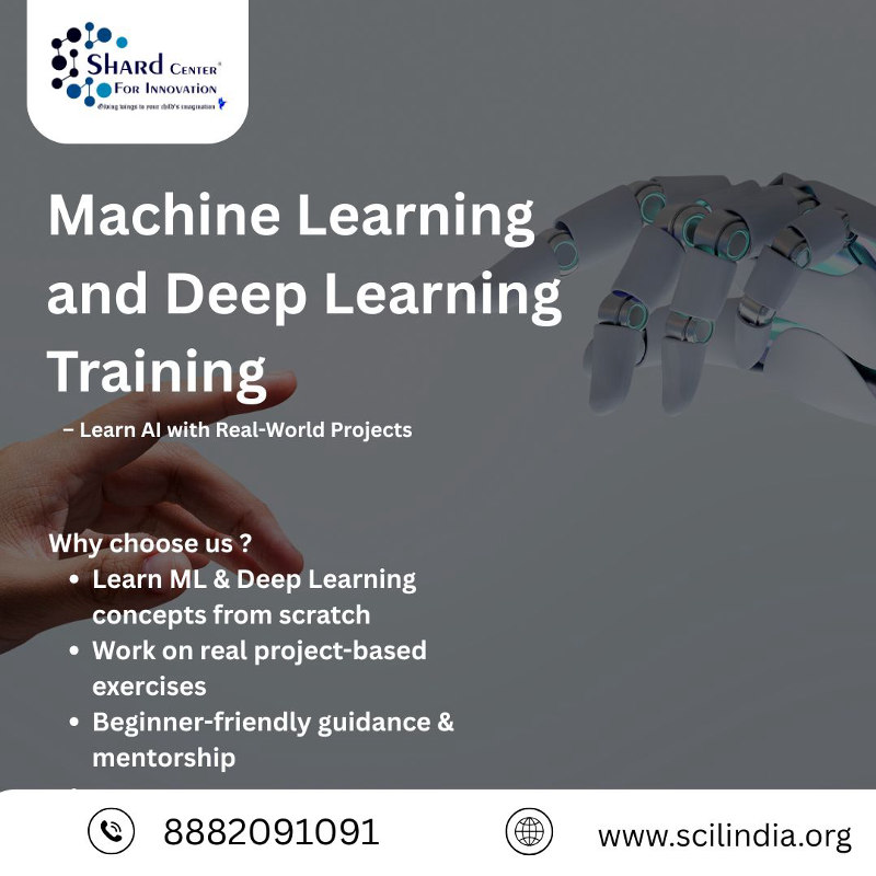 Master the world of Artificial Intelligence through our Machine Learning and Deep Learning training. This program helps learners understand how machines analyze data, learn patterns, and make predictions using neural networks. The curriculum includes model building, data processing, supervised & unsupervised learning, and deep learning concepts — all explained through hands-on projects. Designed for students and beginners, the training follows a step-by-step approach to build confidence and practical skills required for future tech careers. Why choose Shard Center for Innovation ? - Learn ML & Deep Learning concepts from scratch - Work on real project-based exercises - Beginner-friendly guidance & mentorship “Learn the Logic Behind Smart Machines.” Learn more - https://scilindia.org/courses/Machine-learning-course ![]() | |