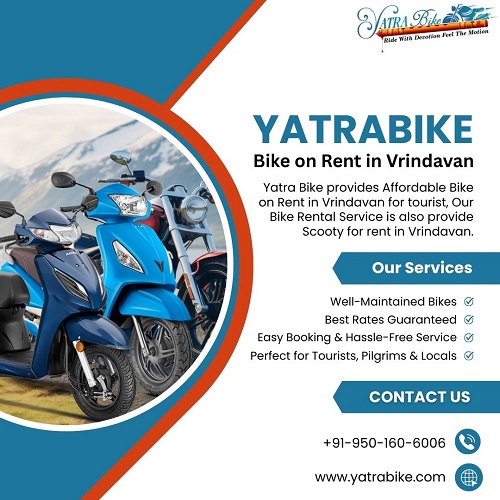 Discover the charm of Vrindavan with a scooty on rent in Vrindavan from Yatra Bike. Our well-maintained scooters are perfect for exploring the city’s temples, markets, and serene ghats. With affordable rates and easy booking, Yatra Bike makes it simple to rent a scooty and explore Vrindavan at your convenience. Don’t miss out on the freedom to roam this beautiful city with a reliable scooty rental. Book yours today! For More informations :- Email :- vrindavanyatrabike@gmail.com Web :- https://yatrabike.com/scooty-on-rent-in-vrindavan/ Mo No :- +91 9501606006 Add :- Vrindavan, India 281121 Uttar Pradesh ![]() | |
