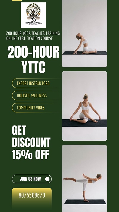 Shashwat Yoga introduces a 200-hour yoga teacher training online certification course. It includes Asana, Pranayama, Meditation, Bandha and Mudra, Kriya, Ayurveda Basics and Ethics & Yoga Professionalism. After completion the course, we provide Certification by Yoga Alliance USA that is Internationally recognized. For more information call us at 8076508670. ![]() | |