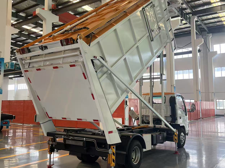 Diesel Garbage Trucks lifting gantry is composed of external gantry frame, internal gantry frame, lifting frame, lifting cylinder, chain and height meter, etc. The inner gantry and external gantry are equipped with rollers. The outer mast is connected to the bottom frame of the chassis by pins, and the lifting frame is connected to the garbage bin body by pins. The lifting cylinder serves as the actuating element, with rollers arranged on both sides of its upper part. The outer frame and the lifting frame are connected by roller chains. When the lifting cylinder performs hydraulic action, the roller chain rolls on the rollers. At this time, the rollers act as movable pulleys, thereby achieving the lifting and lowering of the body by twice the stroke of the cylinder. Diesel Garbage Trucks parameters Chassis model: QL1070BUKAY garbage bin capacity (m3) : 16.5 allow the loading of garbage mass (kg) : 1900 platform working height (mm) : 2200-5800 front platform expansion range (mm) : 0-800 maximum flipping angle of garbage bin (°) : 35 overall dimension (length, width and height) (mm) : 7985×2260×3500 curb weight (kg) : 5500 engine model: 4KH1CN6LB engine emissions: Exhaust pollutants meet the limit requirements of GB 17691-2018 stage VI; exhaust smoke color meets the requirements of GB 3847-2018. Transmission model: MSB-5SM Jiangsu Tianyi Aviation Industry Co., Ltd. Factory: No.2 Hang Kong Road High-tech zone, Jianhu county, Yancheng City, Jiangsu Province, P.R.China Shanghai Office: Room 1103, Building 35, No. 1399 Jiasong Middle Road, Qingpu District, Shanghai, China Tel: +86 21 50496068 / +86 21 50496058 / +86 400 9980 919 Mobile: +86 137 -6133 -5725 (As WeChat) +86-134 -7248 -8657 +86-195 -1651 -9903 +86-137 -7424 -8052 +86-137 -7129 -7873 E_ mail: joinsun@jstianyi.com.cn airport.gse@jstianyi.com.cn Website: www.tianyi-gse.com ![]() | |