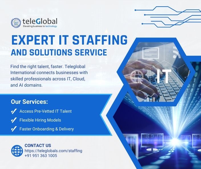 Looking for the right IT professionals to boost your team? Teleglobal International offers expert IT Staffing Services to help businesses hire faster and smarter. Whether you need cloud specialists, AI/ML experts, DevOps engineers, or full-stack developers, we connect you with pre-vetted talent tailored to your project needs. Our Services Include: ✔ Permanent & Contract Staffing ✔ On-Demand Cloud & AI Professionals ✔ Flexible Hiring Models (Remote/Onsite/Hybrid) ✔ Quick Turnaround & Hassle-Free Onboarding Contact us to discuss your staffing needs@ https://teleglobals.com/staffing ![]() | |