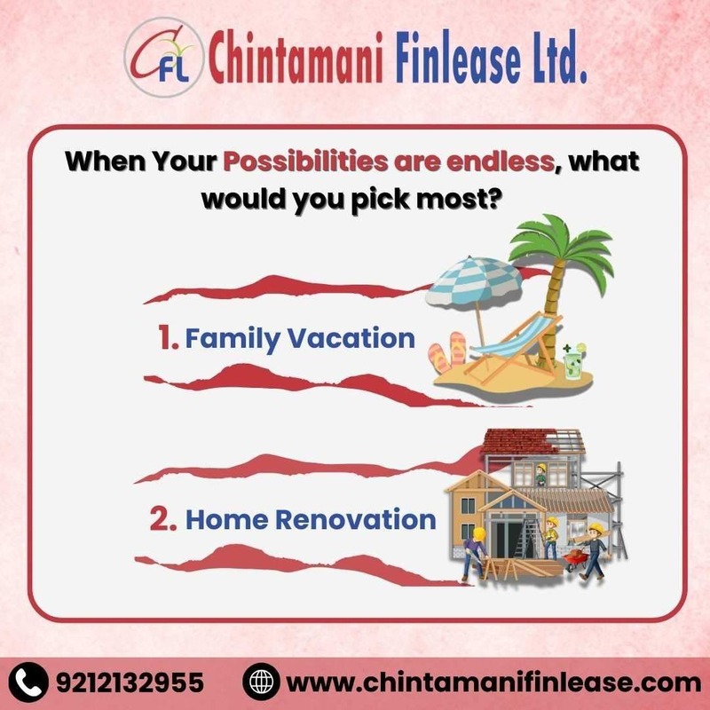 Welcome to Chintamani Finlease. We're here to help you with your Finances, offering solutions tailored just for you. We understand that sometimes expenses can be higher than what you have on hand. Whether you're Dreaming of Renovating your Home, Planning a Dream Vacation, or Facing Unexpected Medical Bills, we've got your back every step of the way. ![]() | |