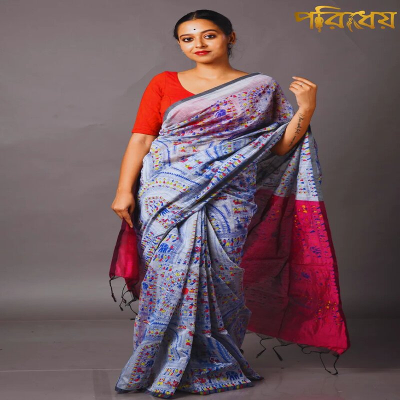 Ash Cotton-Mix Chanderi Saree (Price: Rs. 1056.00) | |