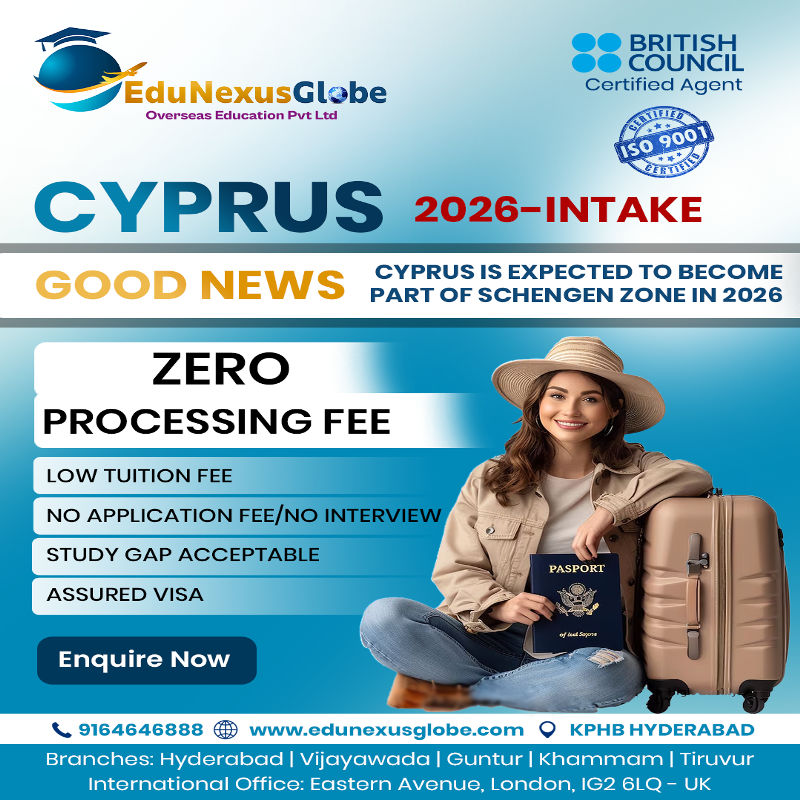 Cyprus expects to join Schengen in 2026! Study now for easy travel across Europe. Zero Processing Fee, low tuition, and assured visa. Enquire today! Location: Hyderabad, Telangana Email: info@edunexusglobe.com Website: http://www.edunexusglobe.com Phone: +91-9966111337 #bestoverseaseducationconsultantsinhyderabad #bestoverseaseducationconsultantsinhyderabadforusa #bestoverseaseducationconsultantsinhyderabad #bestoverseaseducationconsultantsinhyderabadreviews #top10overseaseducationconsultantsinhyderabad #besteducationalconsultantsinhyderabad #overseasconsultancyinhyderabad #bestconsultancyinhyderabadformsinusa #listofoverseaseducationconsultantsinhyderabad #bestoverseaseducationconsultantsinhyderabadforcanada #bestoverseasconsultantsinhyderabad #bestoverseaseducationconsultantsinandhrapradesh #top10bestoverseaseducationconsultantsinandhrapradesh #bestoverseaseducationconsultantsinvisakhapatnam #bestoverseaseducationconsultantsinvijayawada #overseaseducationconsultantsinvizag #besteducationalconsultantsinvijayawada #bestoverseaseducationconsultantsinguntur #bestoverseaseducationconsultantsinhyderabadreviews #onlineclassesbestoverseaseducationconsultantsinhyderabad #ukstudyconsultancyinhyderabad #bestconsultancyinhyderabadforstudyabroad #bestconsultancyforuseducationinhyderabad #bestconsultancyinhyderabadforcanadastudentvisa #abroadstudyplanconsultancyinhyderabad #bestukstudentvitags:saconsultantsinhyderabad #bestconsultancyinhyderabadformbaabroad #bestukstudentvisaconsultantsinhyderabad ![]() | |
