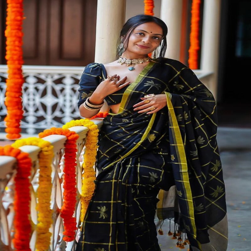 Make a stunning statement this Navratri with Poridheo’s Black Pure Cotton Saree with Weaving Work, designed to keep you stylish and comfortable all night long. Crafted from premium pure cotton, this saree offers a soft and breathable texture, ideal for the energy and excitement of Garba nights. The elegant black shade combined with intricate weaving work adds a touch of sophistication and festive charm. Whether you’re dancing to the beats of dandiya or attending evening rituals, this saree ensures you move gracefully while looking effortlessly beautiful. Shine under the Navratri lights with Poridheo’s Black Pure Cotton Saree with Weaving Work. Contact us now to place your order or for any inquiries. ![]() | |