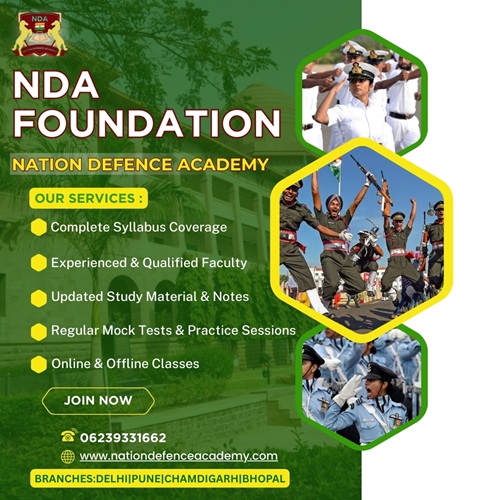 The NDA Foundation Program in Delhi by Nation Defence Academy empowers young aspirants to build a strong academic base along with discipline and leadership qualities. Designed for students aiming to serve the nation, this program integrates school education with focused NDA preparation under expert guidance. The structured curriculum covers mathematics, general studies, and physical training to enhance both intellectual and physical strength. With experienced faculty, modern facilities, and a mentor-driven environment, students receive the right balance of knowledge and training. The program nurtures confidence, critical thinking, and determination, enabling future defence officers to achieve excellence from an early stage. Contact us: Nation Defence Academy Our branches: Delhi, Pune, Bhopal, Chandigarh Visit:https://nationdefenceacademy.com/nda-coaching.php ![]() | |