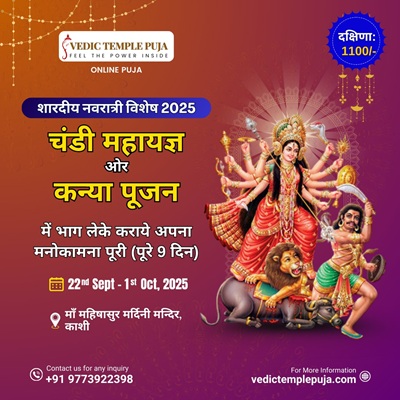 Participate in the Chandi Maha Yagna and Kanya Pujan rituals for the entire 9 days of Navratri, at Maa Mahishasura Mardini Temple, Kashi. For more details visit us https://www.vedictemplepuja.com/special-puja/chandi-mahayagya-aur-kanya-pujan-2025/ Or +91 9773922398. ![]() | |