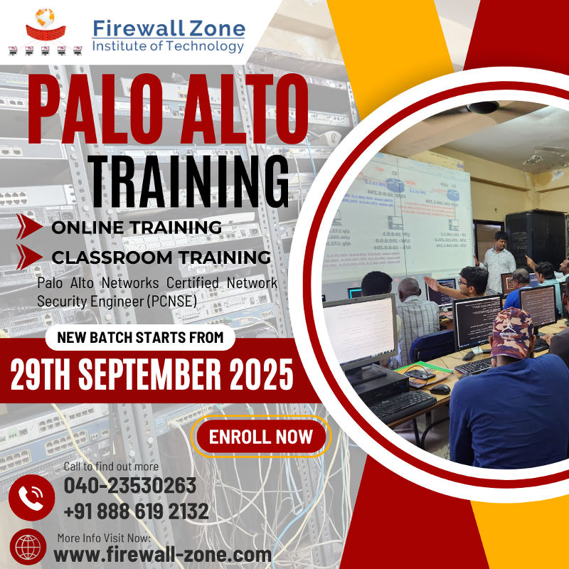 Join Us for Palo Alto Networks Training! Starting from September 29th, 2025 Firewall Zone Institute of IT Classroom Training & Online Training Course Highlights: - Learn from industry experts. - Dive deep into Palo Alto Networks technologies. - Hands-on labs and real-world scenarios. - Boost your cybersecurity skills. 1-Day Free Demo Class: - Experience our training firsthand. - Explore Palo Alto Networks features. - Ask questions and interact with instructors. Don't miss this opportunity! Secure your spot now. #CybersecurityTraining #PaloAltoNetworks #FirewallZoneIT #PaloAlto #paloNetworks #paloCertified #paloNetworkSecurity #paloEngineer ![]() | |