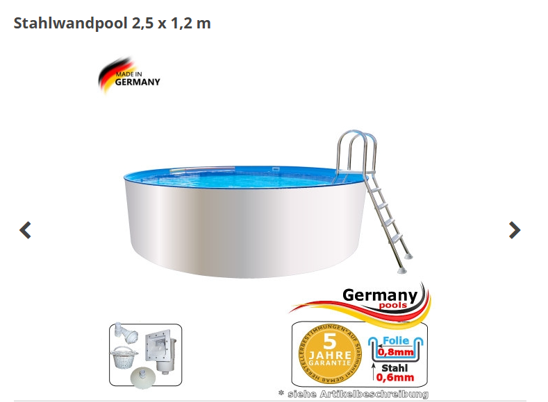 Stahlwandpool 2,5 x 1,2 m Rundpool | Pool.Net | |