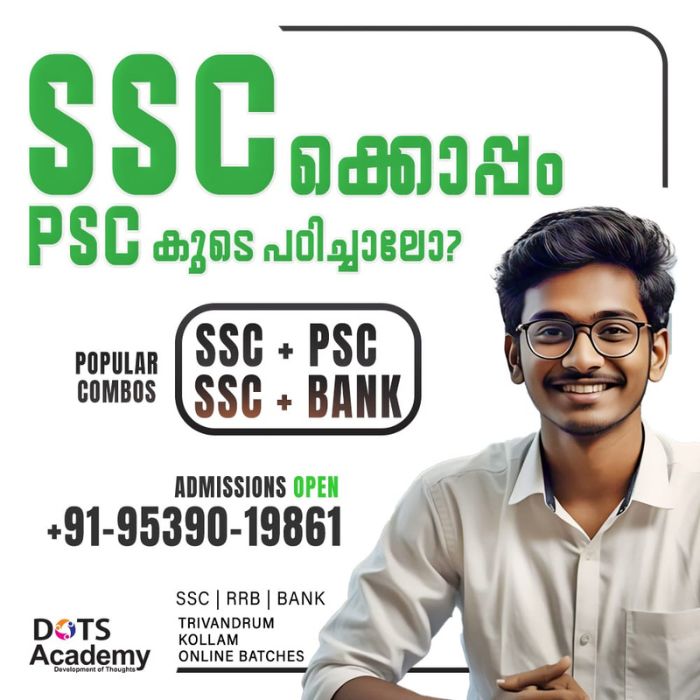 Searching for the best SSC CGL coaching in Kerala? DOTS Academy is your trusted destination for comprehensive and result-driven training. Recognized as one of the top institutes for SSC CGL Kerala, DOTS Academy offers expert guidance for aspirants aiming to excel in the SSC Combined Graduate Level Exam and other degree-level government exams. With experienced faculty, structured study materials, and personalized mentoring, we ensure every student is well-prepared for all SSC exam stages. Our SSC CGL coaching in Kollam centre provides an ideal learning environment with regular mock tests, doubt-clearing sessions, and updated syllabus coverage. DOTS Academy also offers specialized programs for SSC degree level coaching in Kerala and SSC CAPF coaching, helping candidates build a strong foundation and achieve their career goals in government services. Whether you’re in Kollam, Trivandrum, or nearby areas, DOTS Academy stands as the go-to choice for focused, effective, and proven SSC coaching. Enroll today and take your first step toward a successful SSC career with DOTS Academy – where preparation meets success. ![]() | |