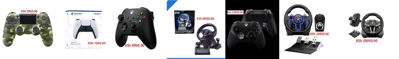 Brand New Gamepads and Controllers PlayStation 4 {PS4} Wireless Gamepad {Camouflage color} - 2950.00 Xbox 360 wireless receiver for computer - 3250.00 Logitech F710 Original Wireless Gamepad - 5700.00 USB Vibration Racing Steering Wheel For PS2 PS3 and Computer - 6500.00 PlayStation 5 {PS5} Original Sony Dual sense Wireless Controller Gamepad - 7950.00 Playstation 4 {PS4} New Generation Original Sony Wireless Dualshock 4 Gamepad {genuine Europe} - 8450.00 RGB Wireless Controller gamepad for Playstation 5 {PS5} with extra programmable buttons - 8450.00 XBOX One_Xbox Series X_Xbox Series S Original Wireless Gamepad - 8950.00 Cobra V6 Flight Simulation Joystick - 9950.00 7 IN 1 Vibration steering wheel for PC ps3 ps4 XBOX One and Nintendo Switch {R270 NS-9887} - 10950.00 XBOX Elite series 2 Original Wireless and Bluetooth Gamepad - 22950.00 Suzuka F111 racing wheel set with Clutch pedals and H-shifter for PS5, PS4, NS, PC - 24950.00 Suzuka F107 racing wheel set with Clutch pedals and H-shifter for PS5, PS4, NS, PC plus D101 - 28950.00 CONTACT : 0786 178372 or 0726 178372 LOCATION : Shop 501 (5th floor), Veteran House (Graffins college) Moi avenue, Nairobi Kenya ![]() | |