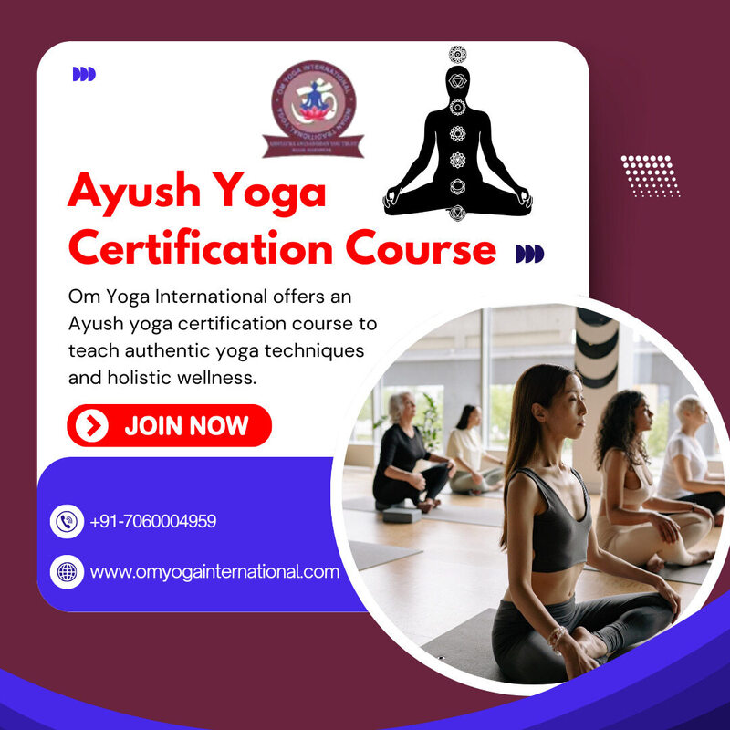 Om Yoga International in Rishikesh, India provides the authentic Ayush yoga certification course ideal for yoga practitioners and future teachers seeking government-recognized certification. We provide a complete curriculum covering traditional yoga, pranayama, meditation and philosophy, guided by experienced yoga gurus. Our course is aligned with AYUSH standards, ensuring both practical and theoretical mastery. Om Yoga International in Rishikesh, India helps you deepen your practice and transform your passion for yoga into a meaningful career. We invite you to join us today and begin your journey to becoming a certified yoga practitioner. Our Courses: * 200,300,500 Hour - Online Yoga Teacher Training * Yoga For Pregnancy Online * Sound Healing Teacher Training Course * Online Yoga Therapy Courses * Online YCB Level Yoga Course * Online RYT Level Yoga Courses Contact Us Now: Mobile: +91 7060004959 Address: Kailashanand Mission Trust, Laxman Chowk, Laxman Jhula Rd, Tapovan, Rishikesh, Uttarakhand 249192 E-Mail: info@omyogainternational.com Website: www.omyogainternational.com Map: https://maps.app.goo.gl/NSKSj4ZbwnR2dUAB7 ![]()  | |