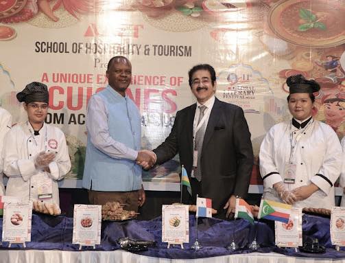 AAFT School of Hospitality and Tourism Showcases Rwandan Cuisines at 11th Global Literary Festival Noida 2025 Noida, 25th September 2025: Adding rich flavors and cultural vibrancy to the 11th Global Literary Festival Noida 2025, the AAFT School of Hospitality and Tourism, with the support of the International Chamber of Media and Entertainment Industry (ICMEI), presented a delightful showcase of authentic Rwandan cuisines at Marwah Studios, Film City Noida. The event was inaugurated by Mr. Emile Mwepesi of the High Commission of Rwanda, who expressed his happiness at seeing Rwanda’s culinary traditions celebrated in India. “Cuisine is a reflection of our history, diversity, and spirit. Sharing Rwandan food with friends in India is not just about taste but about strengthening cultural understanding and friendship between our nations,” he said. Welcoming the distinguished gathering, Dr. Sandeep Marwah, President of Marwah Studios and Chair of the Indo Rwanda Film and Cultural Forum, underlined the significance of food as a universal language. “Hospitality and gastronomy are powerful tools of cultural diplomacy. By bringing Rwanda’s flavors to India, we are deepening bonds of love, peace, and unity while giving our students and festival participants an enriching experience,” he remarked. The showcase of Rwandan delicacies added a unique dimension to the festival, perfectly blending literature, culture, and gastronomy, and creating yet another memorable chapter in the journey of global cultural exchange at Marwah Studios. ![]() | |
