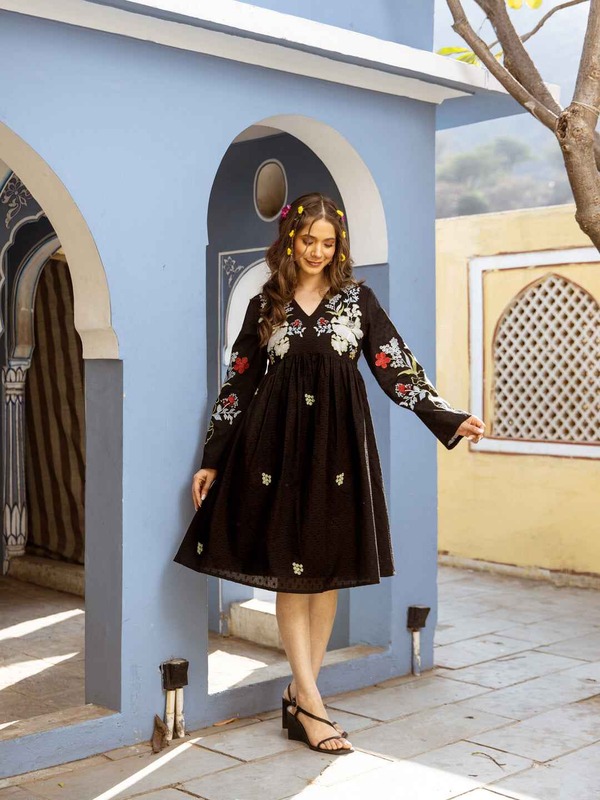 Shop Bold Black Embroidery Dress Online for Modern Fashion Choices | |