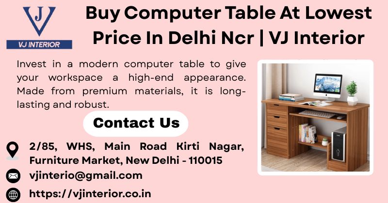 Looking for a modern computer table that elevates your work experience. VJ Interior offers a high-end modern computer table that enhances workspace and office suites. Manufactured with high-quality materials that enhance the durability of the table. Made from engineered wood and laminates that suit the aesthetics of the office suits. The smooth finish of the tables makes cleaning easy. These computer tables are sturdy and well-constructed, which ensures the stability of computers and their accessories. These tables have compartments and drawers for storage. These modern tables have an integrated cable management system and the latest technology, like a charging port, etc. Ideal for students and working professionals who require a personalised space for work. Don’t miss the opportunity to invest in a better experience and maximum productivity. For more details, visit: Website: https://vjinterior.co.in/product-category/office-tables/computer-table/ Email: vjinterio@gmail.com ![]() | |