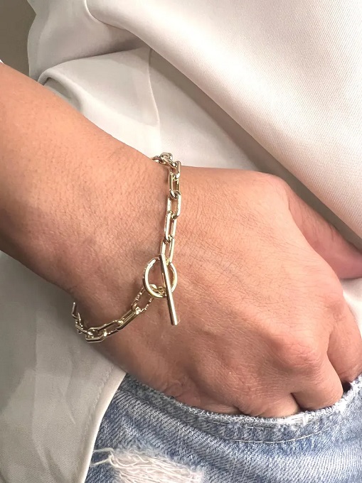 Handcrafted 14K Yellow Gold Paperclip Bracelet – 7.5-Inch Chain with Elegant Toggle Clasp | |