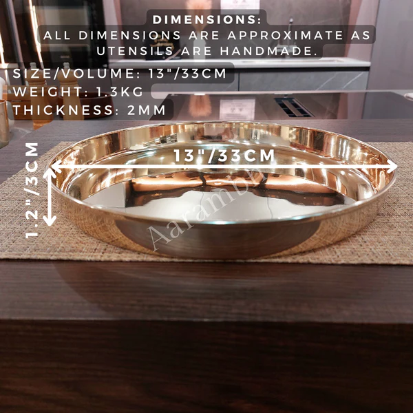 The Bronze Thali is an elegant and timeless piece of dinnerware, crafted from pure bronze for long-lasting durability. Enjoy the warmth of this unique metal in your everyday dining experience. ![]() | |