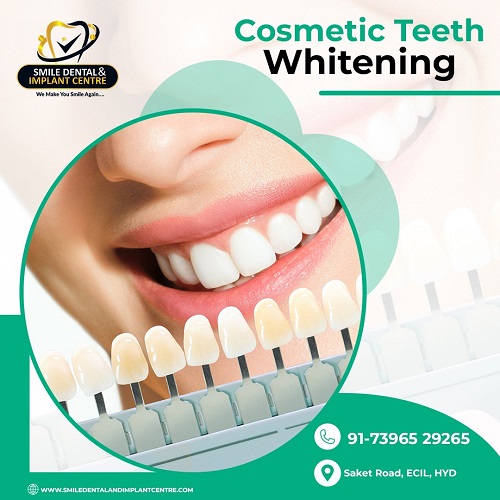 Professional teeth cleaning at Smile Dental and Implant Centre can brighten your smile. Your daily brushing removes surface dirt, but it often misses stubborn plaque and tartar buildup below the gum line. At our dental clinic, skilled dental hygienists use special tools and techniques to scrub away these hidden deposits. This process, known as scaling and polishing, leaves your teeth smoother and your gums healthier. Many patients notice their smiles look whiter right away, as the cleaning polishes away stains from coffee, tea, or tobacco. Regular professional dental cleanings, performed every six months, help prevent cavities and gum disease that brushing at home may not prevent. Imagine flashing a confident grin without worry about dull spots or bad breath. Our team makes the visit quick and comfortable, with gentle methods to ease any nerves. Book your appointment today at Smile Dental and Implant Centre. You will feel the fresh difference in your mouth and boost your overall confidence. For an Appointment, Call +91-7396529265, +91-9490618635, +91-9490618636. More Info Visit our Website: https://smiledentalandimplantcentre.com/cosmetic-dentistry/ Check our Google Reviews and Directions: https://maps.app.goo.gl/wQ6t3GwnsLNUPP5Y8 Location: 1st floor, K Rathod Jewellers, Besides Honey Foods near Kapra Circle, Saket Road-Kapra, Ecil ![]() | |