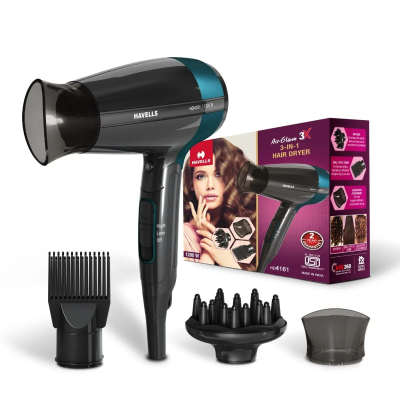 Style effortlessly with the Havells HD4161 3-in-1 Styling Hair Dryer featuring a 1200 W motor, three detachable attachments (diffuser, quill-style comb, aerofocus nozzle), three heat/ two speed settings, cool-shot, foldable handle and overheat protection — perfect for salon-like results at home or on the go. ![]() | |