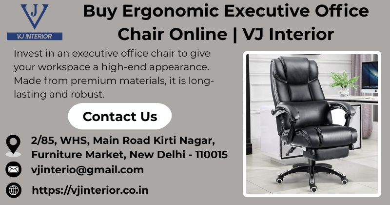 | This executive office chair will enhance your workspace and be ideal for extended periods of comfortable and effective work. VJ Interior offers ergonomic executive office chairs with adjustable lumbar support, a breathable mesh back, and a cushioned seat, all designed with your health in mind to maximize comfort and reduce strain. The height-adjustable armrests guarantee that your arms and shoulders are properly aligned, and the multi-tilt mechanism lets you lock the chair in a variety of positions. It provides exceptional stability and mobility thanks to its smooth-rolling casters and strong five-star base. With the help of height adjustment and adjustable armrests, you can tailor this chair to your exact requirements and maintain an ideal posture, which will reduce strain and increase productivity. So invest in your perfect office setup with a modern office chair. For more details, visit: Website:https://vjinterior.co.in/product-category/office-furniture/office-chair/executive-chair/ Email: vjinterio@gmail.com  | |