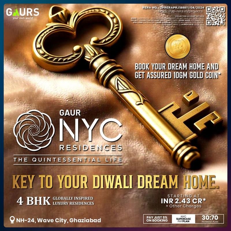 Gaur NYC Residence enhance your lifestyle by owning a luxury dream home at Gaur NYC Residences where elegances meets innovation, it designed for modern comfort to home buyers. these 4 BHK luxury Apartments in Wave City, Ghaziabad offers luxury amenities that elevate everyday living including swimming pool, club, park, parking, gym, jogging track etc. Gaur NYC Residences floor plan starts from 2210 to 5000 sqft which is so specious for family. The price starts from 2.43 Cr* only! RERA No.: UPRERAPRJ188811/08/2024. ![]() | |