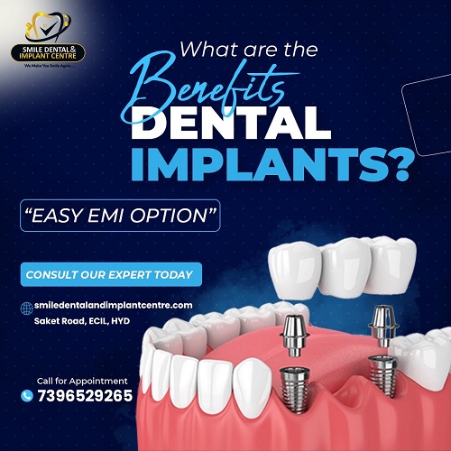 Dental implants offer a lasting way to replace missing teeth. At Smile Dental and Implant Centre in Hyderabad, you can get them at prices that fit most budgets. This clinic focuses on quality work without high fees. Many people lose teeth from decay, injury, or age. Implants act like roots for new teeth. They use small titanium posts placed in the jawbone. These posts fuse with the bone over time. Then, a crown goes on top to match your natural teeth. Why pick this spot in Hyderabad? The city draws patients from across India for its skilled dentists and fair costs. Smile Dental stands out with a team trained in modern methods. They check your mouth fully before starting. This helps avoid issues later. Costs stay low because they use local resources and efficient steps. A full implant might run less than in bigger cities. Patients often save up to half on what they pay elsewhere. Expert care matters most. The dentists here handle cases from simple to tough. They aim to ease pain and speed healing. After the procedure, you get tips on care to keep implants strong. Results show in brighter smiles and better bites. No more slipping dentures or gaps that harm speech. Worried about the process? It starts with a quick exam and X-rays. Surgery takes one visit for most. Recovery needs a few days of rest. Long-term, implants last 15 years or more with good habits. Book your spot now at Smile Dental and Implant Centre. A consultation lets you see options up close. Take that step toward a confident smile today. For an Appointment, Call +91-7396529265, +91-9490618635, +91-9490618636. More info visit our website: https://smiledentalandimplantcentre.com/dental-implants/ Check our Google Reviews and Directions: https://maps.app.goo.gl/wQ6t3GwnsLNUPP5Y8 Location: 1st floor, K Rathod Jewellers, Besides Honey Foods near Kapra Circle, Saket Road-Kapra, Ecil ![]() | |