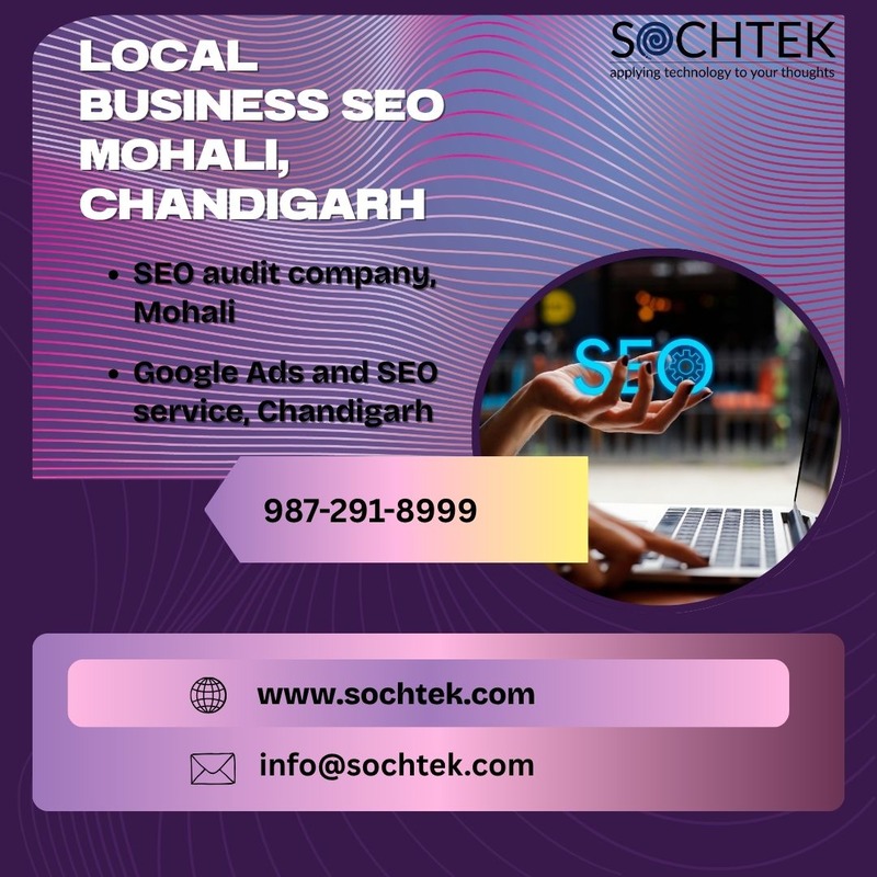 Looking to grow your local business online? Sochtek offers expert Local SEO services in Mohali and Chandigarh, including SEO audits, Google Ads management, and complete digital marketing solutions. Increase your visibility, attract local customers, and watch your business thrive with Sochtek’s proven strategies. Contact: 987-291-8999 Visit: www.sochtek.com Email: info@sochtek.com ![]() | |