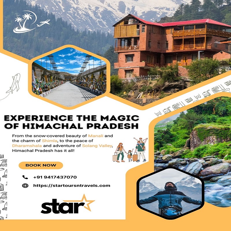 Escape into the land of snow-capped peaks, lush valleys, and breathtaking views with our exclusive Himachal Pradesh Tour Packages. Whether you dream of cozy stays in Shimla, thrilling adventures in Manali, or peaceful moments in Dalhousie — we make it happen! Indulge in comfort with our Luxury Himachal Pradesh Tour Packages, designed to give you a perfect blend of elegance and exploration. From private transfers to premium stays, every detail is crafted for an unforgettable mountain getaway. Book your journey today and let Star Tours N Travels turn your Himachal dream into reality. Explore Now → startoursntravels.com/himachal-pradesh-packages ![]() | |